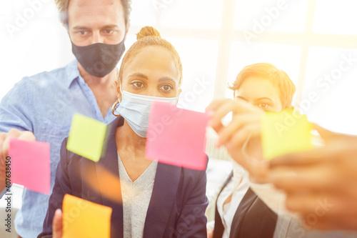 Panorama aus Silhouetten von Geschäftsleuten vor bunten Business Portraits