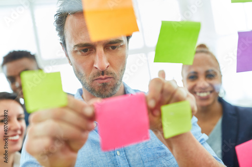Panorama aus Silhouetten von Geschäftsleuten vor bunten Business Portraits
