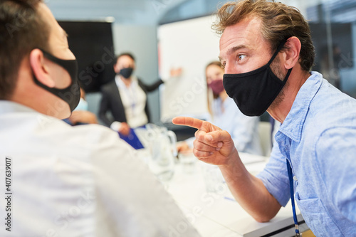 Business Mann mit Mundschutz in einem Seminar