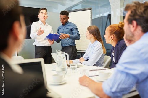 Panorama aus Silhouetten von Geschäftsleuten vor bunten Business Portraits