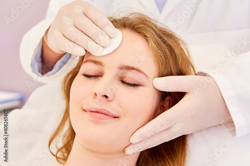 Junge Frau mit Schutzbrille bei der Laserepilation