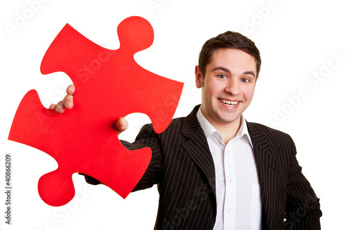 Geschäftsmann hält Puzzleteil