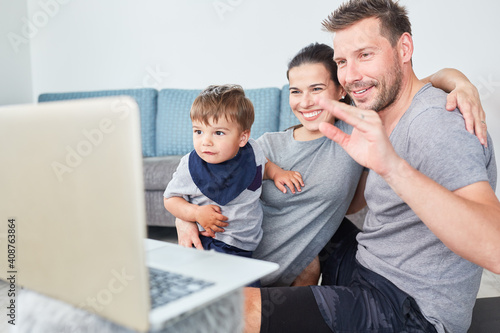 Eltern und Kind geben sich High Five im Wohnzimmer
