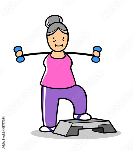 Senior Frau auf Steppbrett bei Aerobic und Gymnastik