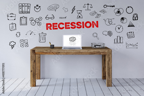Schriftzug recession auf Enter Taste von Computer Tastatur