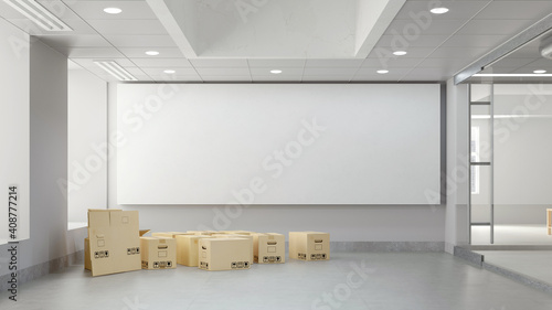 Umzugskarton in Büro oder Konferenzraum beim Umzug