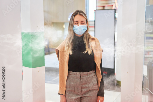 Customer with face mask during Covid-19 disinfection