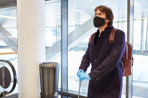 Business traveler with face mask at the airport