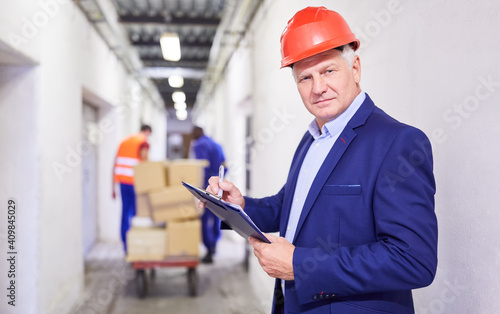 Boss einer Spedition mit Checkliste auf Klemmbrett