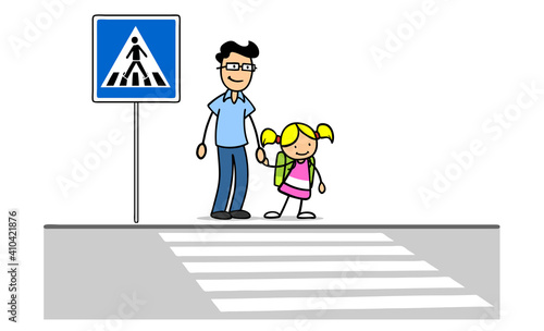 Schulkind lernt Schulweg als Verkehrserziehung mit Vater