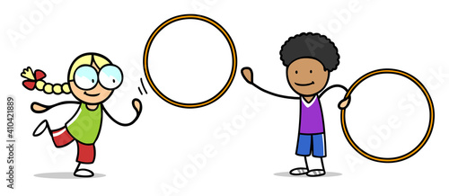 Kinder bei Hindernislauf durch Gymnastikreifen