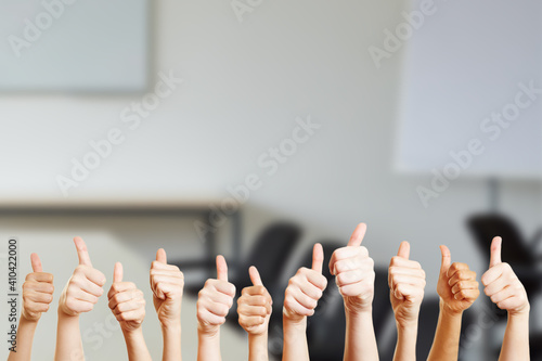 Geschäftsleute halten Daumen hoch bei der Arbeit
