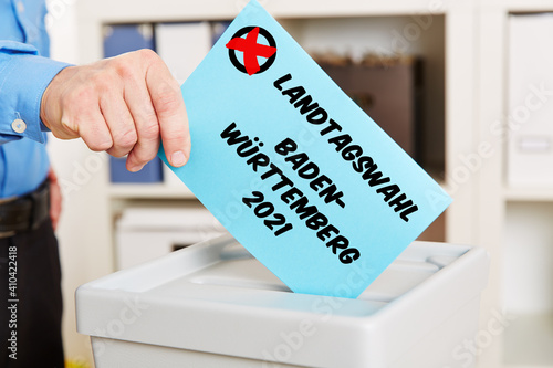 Hand beim Wählen für Landtagswahl 2021 in Baden-Württemberg