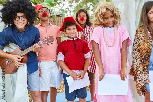 Kinder im lustigen Kostüm beim Talentshow Auftritt