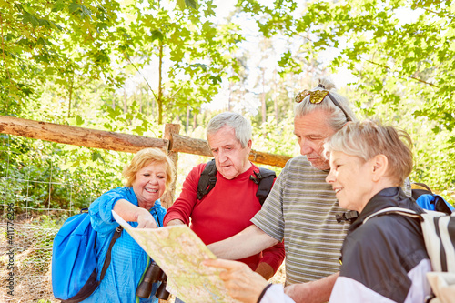 Senioren mit Wanderkarte auf einer Trekking Tour