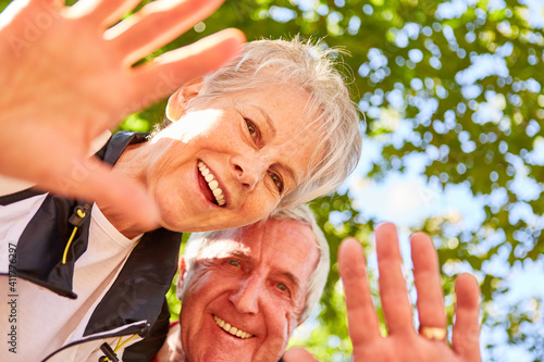 Glückliches Paar Senioren trinken Wein am Geburtstag