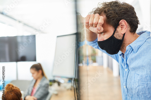 Nachdenklicher Geschäftsmann mit Mundschutz