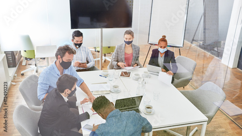 Business Leute mit Mundschutz wegen Covid-19
