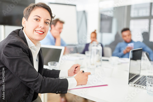 Panorama aus Silhouetten von Geschäftsleuten vor bunten Business Portraits