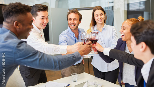Business people celebrate success with red wine in the office
