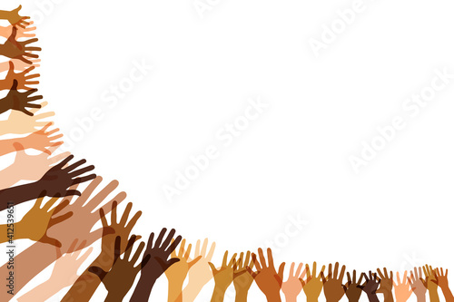 Panorama Banner mit Rahmen vielfältiger Hände eines Teams