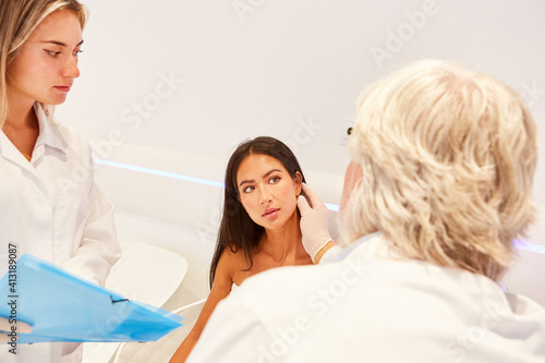 Female patient being examined by a dermatologist