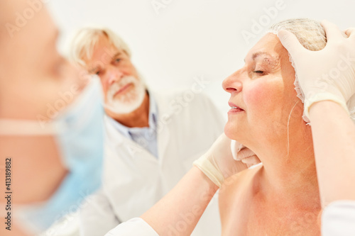 Ältere Frau bei Augenlidstraffung durch Thermage
