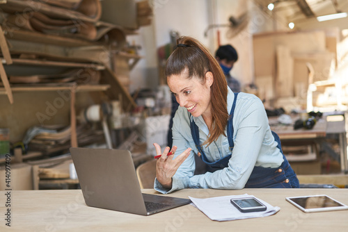 Videochat mit Kunden in der Schreinerei Werkstatt