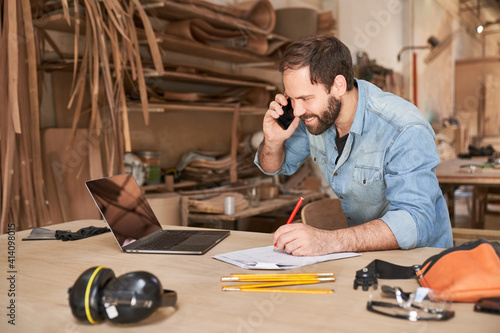 Videochat mit Kunden in der Schreinerei Werkstatt