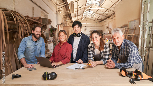 Ausbilder lehrt Schreiner Lehrlinge in der Tischlerei
