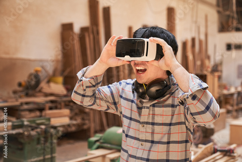 Junge Frau als Handwerker Azubi mit VR-Brille