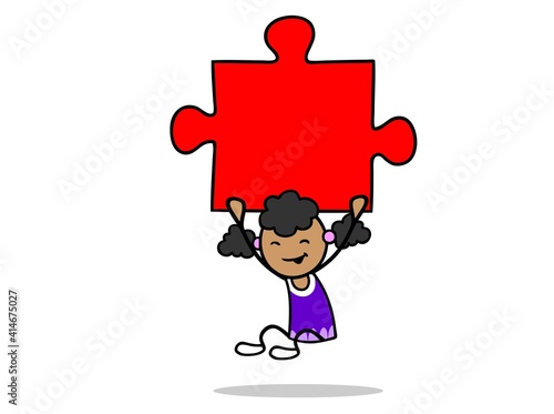 Afrikanisches Mädchen hält rotes Teil von Puzzle