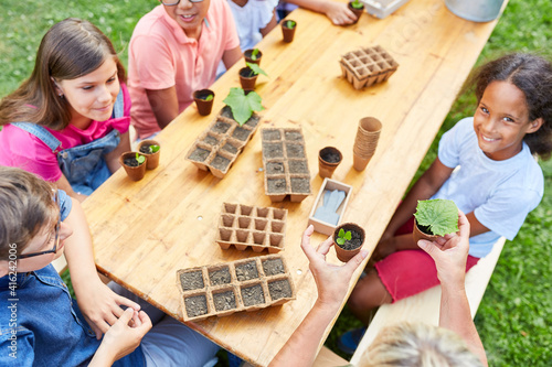 Kinder in der Sommerschule lernen Pflanzen Anzucht