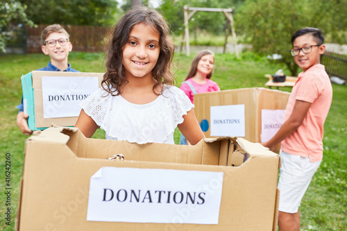Children collect donations for clothing collection