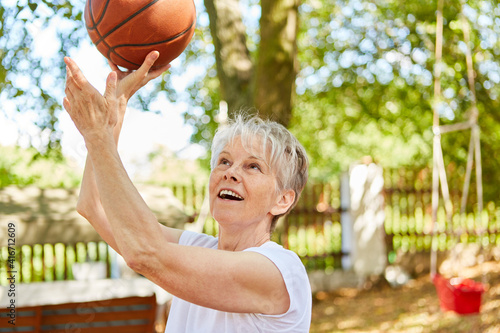 Senior Frau als vitaler Rentner beim Basketball