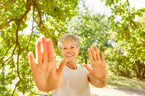 Hand mit Lupe sucht in Portraits als Umfrage und Marktforschung Konzept