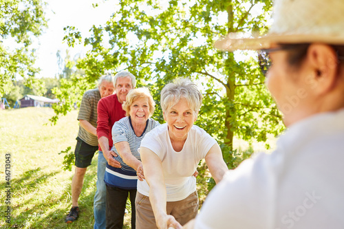 Gruppe Senioren beim Tauziehen Wettkampf im Sommer
