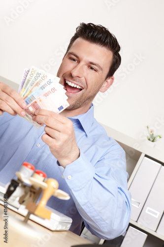 Hand mit Lupe sucht in Portraits als Umfrage und Marktforschung Konzept
