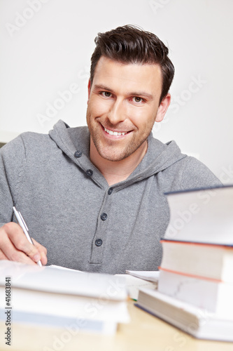 Hand mit Lupe sucht in Portraits als Umfrage und Marktforschung Konzept