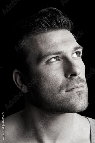 Black and white portrait of a thoughtful Greek man in turtleneck