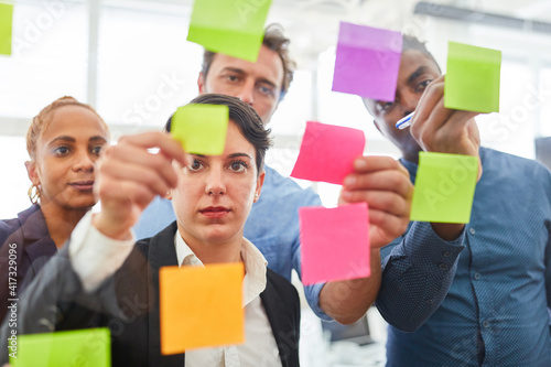 Panorama aus Silhouetten von Geschäftsleuten vor bunten Business Portraits