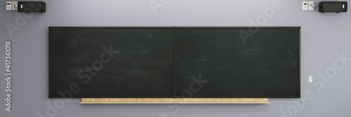 Wand im Klassenraum mit Schultafel und Lautsprechern