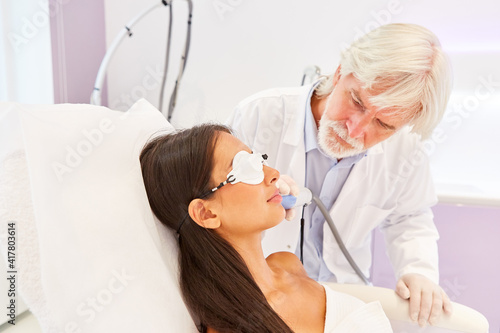 Junge Frau mit Schutzbrille bei der Laserepilation