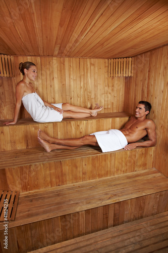 Mann und Frau zusammen in Sauna