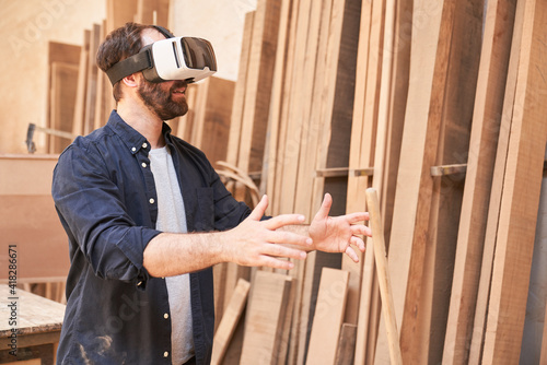 Handwerker mit VR-Brille bei Simulation der Zukunft