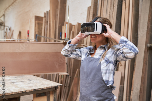 Junge Frau als Handwerker Azubi mit VR-Brille
