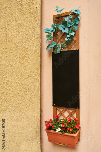 Easter-themed entrance adorned with floral decorations and colorful eggs