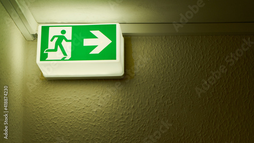 Notausgang zeigt Fluchtweg bei Brand mit Rauch im Haus