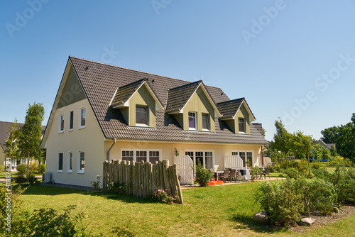 Own home with garden in the countryside in summer