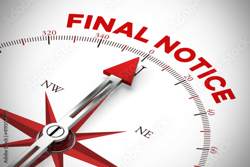 Mahnung Konzept mit Kompass der auf Final Notice zeigt